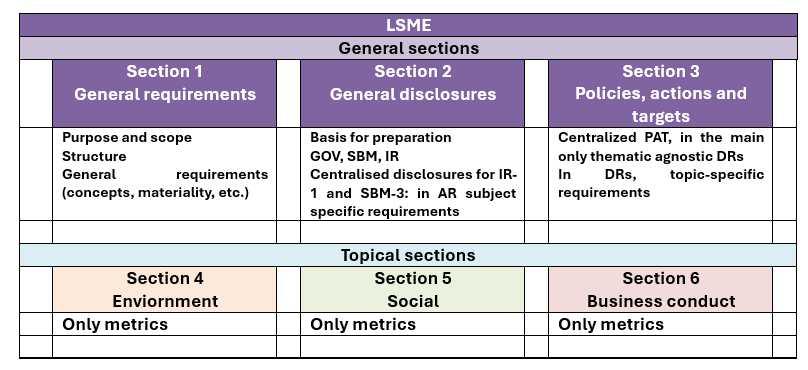 Source: EFRAG. 2024 ESRS LSME ED Basis for conclusions. Structure of the ESRS LSME ED, p.12